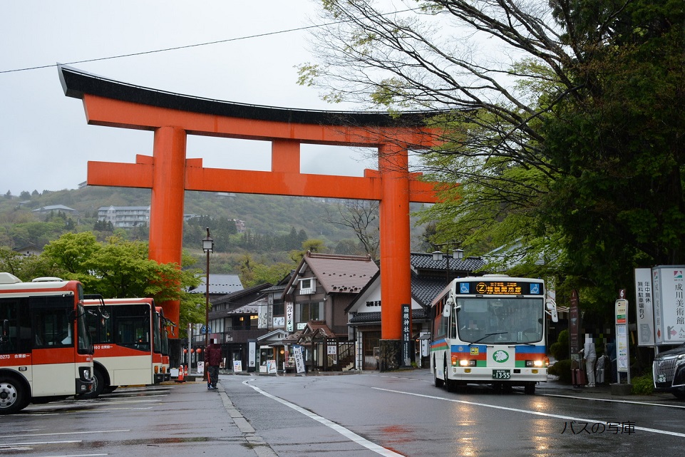 箱根湯本駅前を行く『1355』 (2021年05月中旬撮影) |