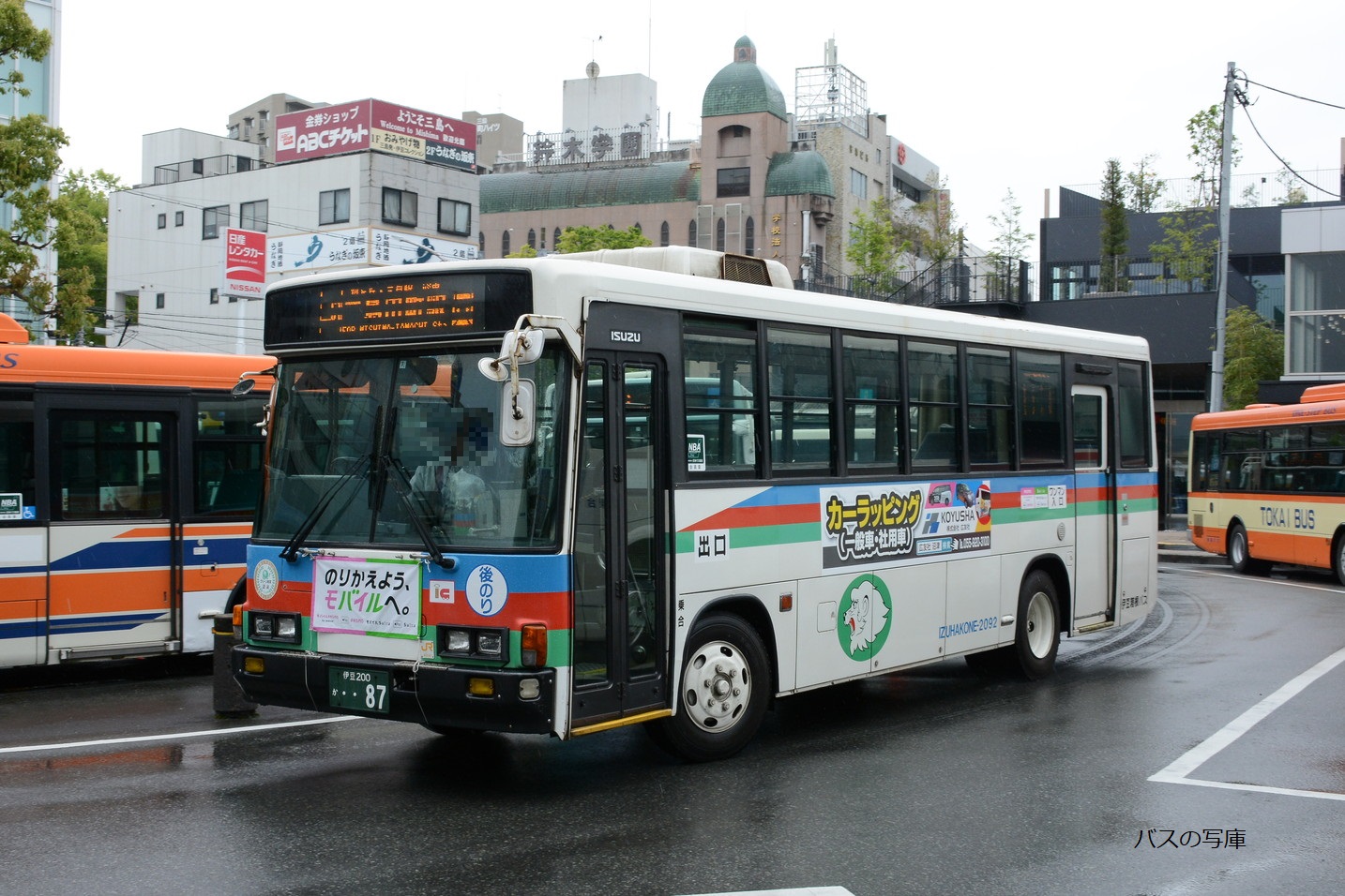 伊豆長岡駅前を行く『ラブライブサンシャインバス1号車』 (2018年7月上旬撮影) |