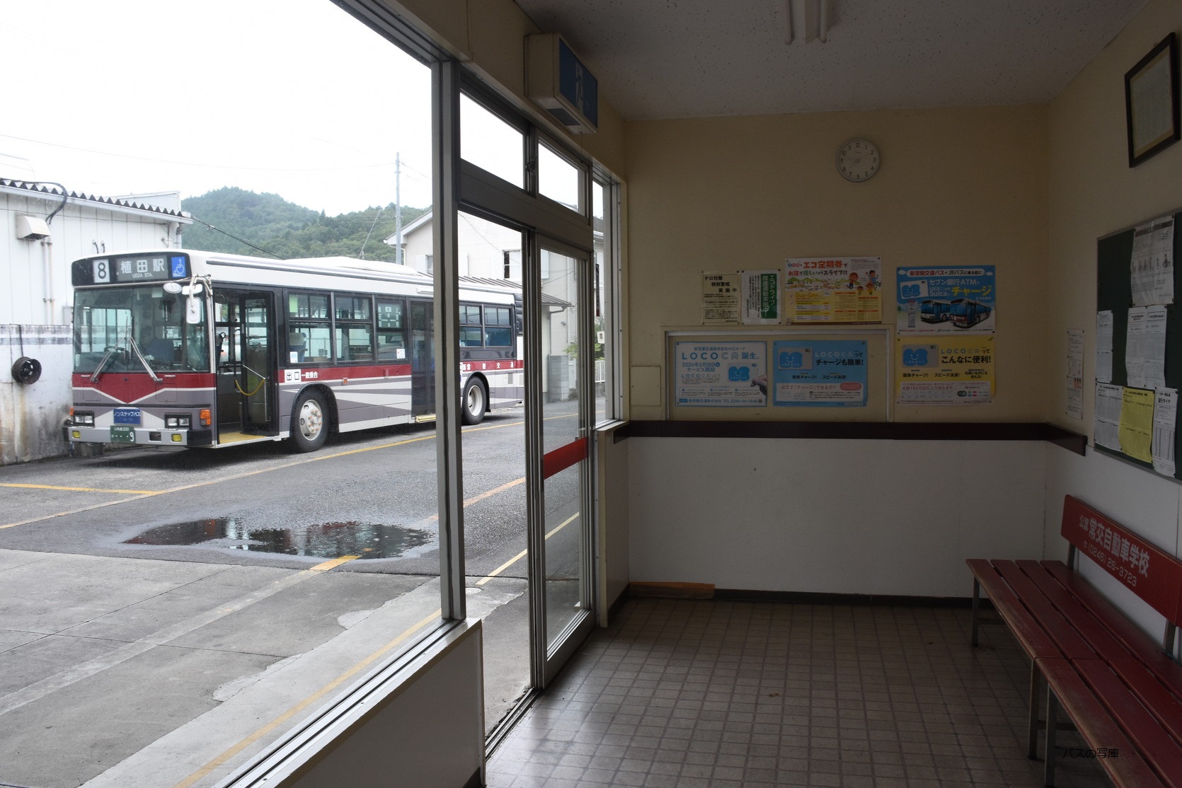 常磐交通らしい待合室と『467号車』 (※貸切会にて撮影) (2024年08月中旬撮影) |