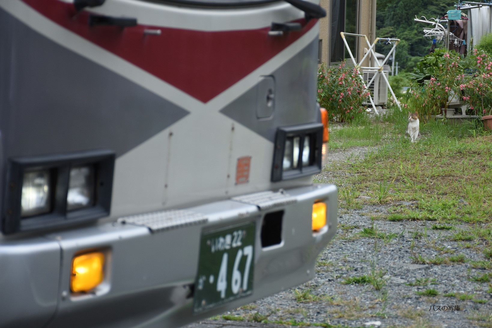 物珍しいそうに出てきた猫と『467号車』 (※貸切会にて撮影) (2024年08月中旬撮影) |