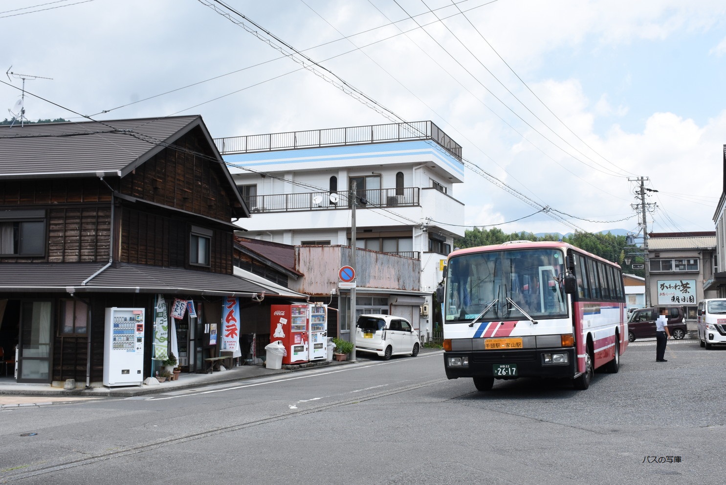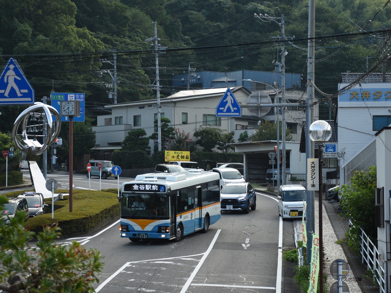 金谷駅前に到着する『1121』 (2025年08月下旬撮影) |
